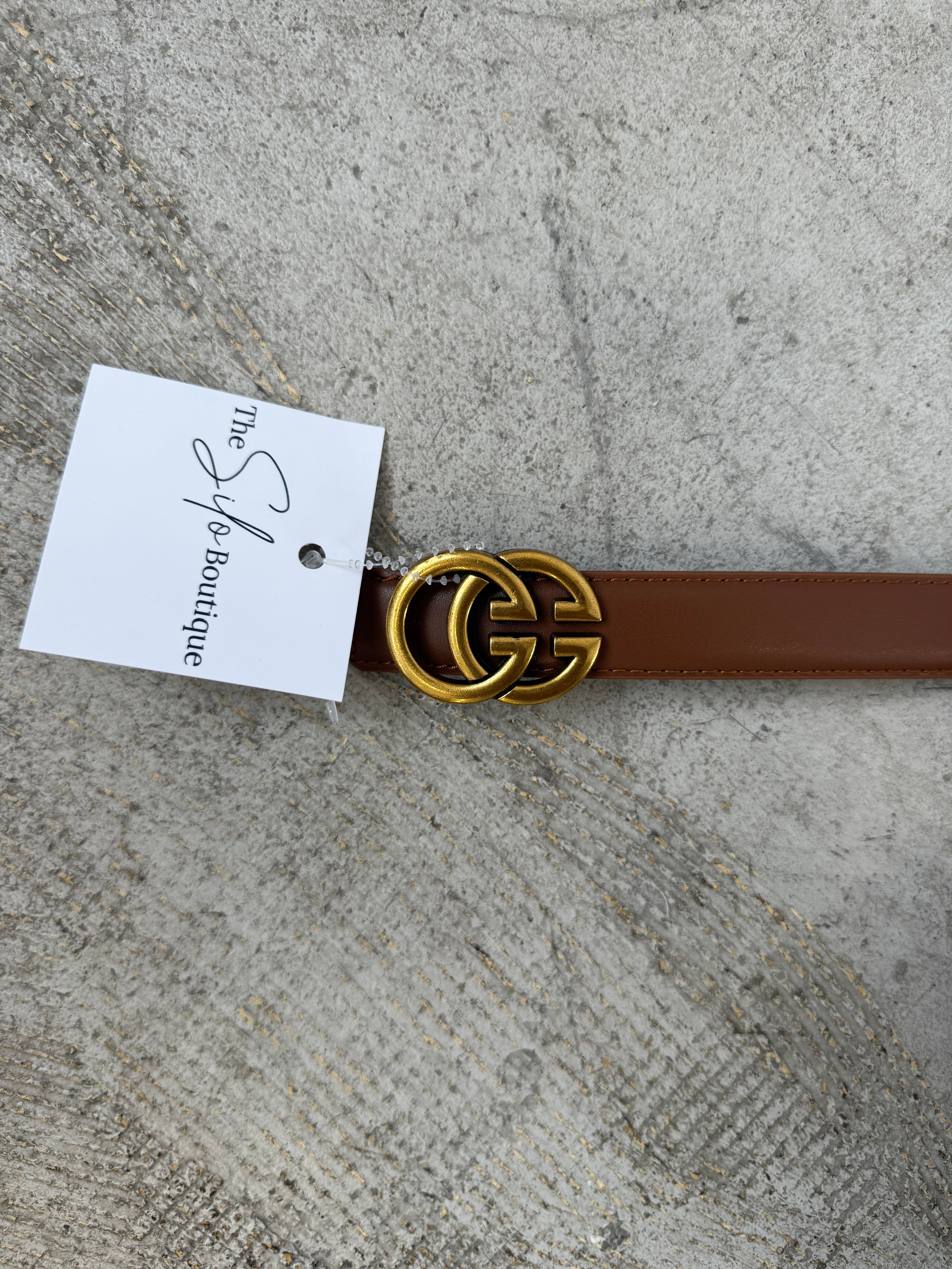 Add a dash of fun to your outfit with this Dual Golden Belt-Brown! Featuring a bold double-G buckle that steals the spotlight, this belt is woven from durable, textured material for lasting style and comfort. Its rich brown hue brings warmth and pairs effortlessly with all your favorite looks. Perfect for those who love mixing classic vibes with a playful twist!